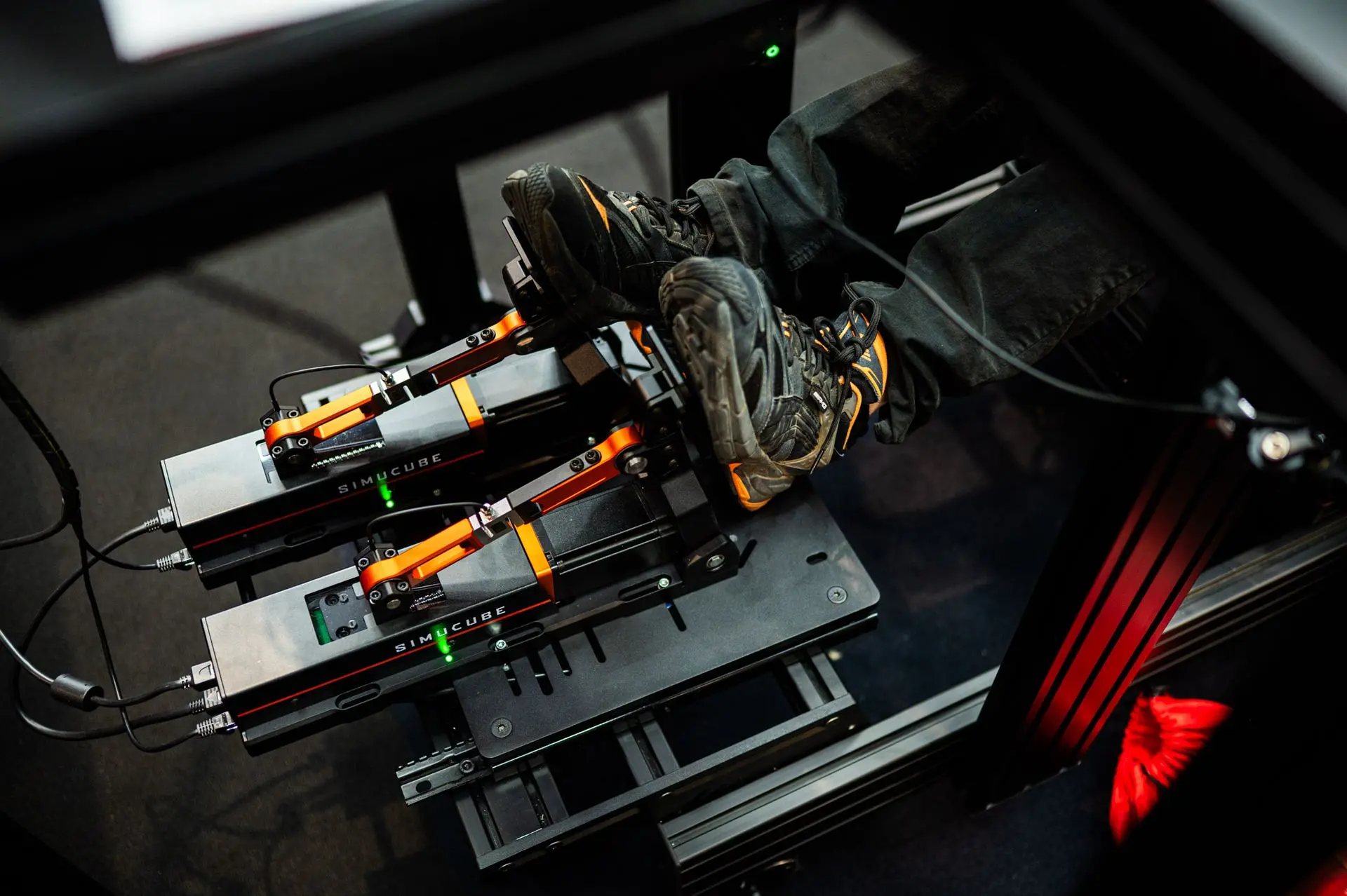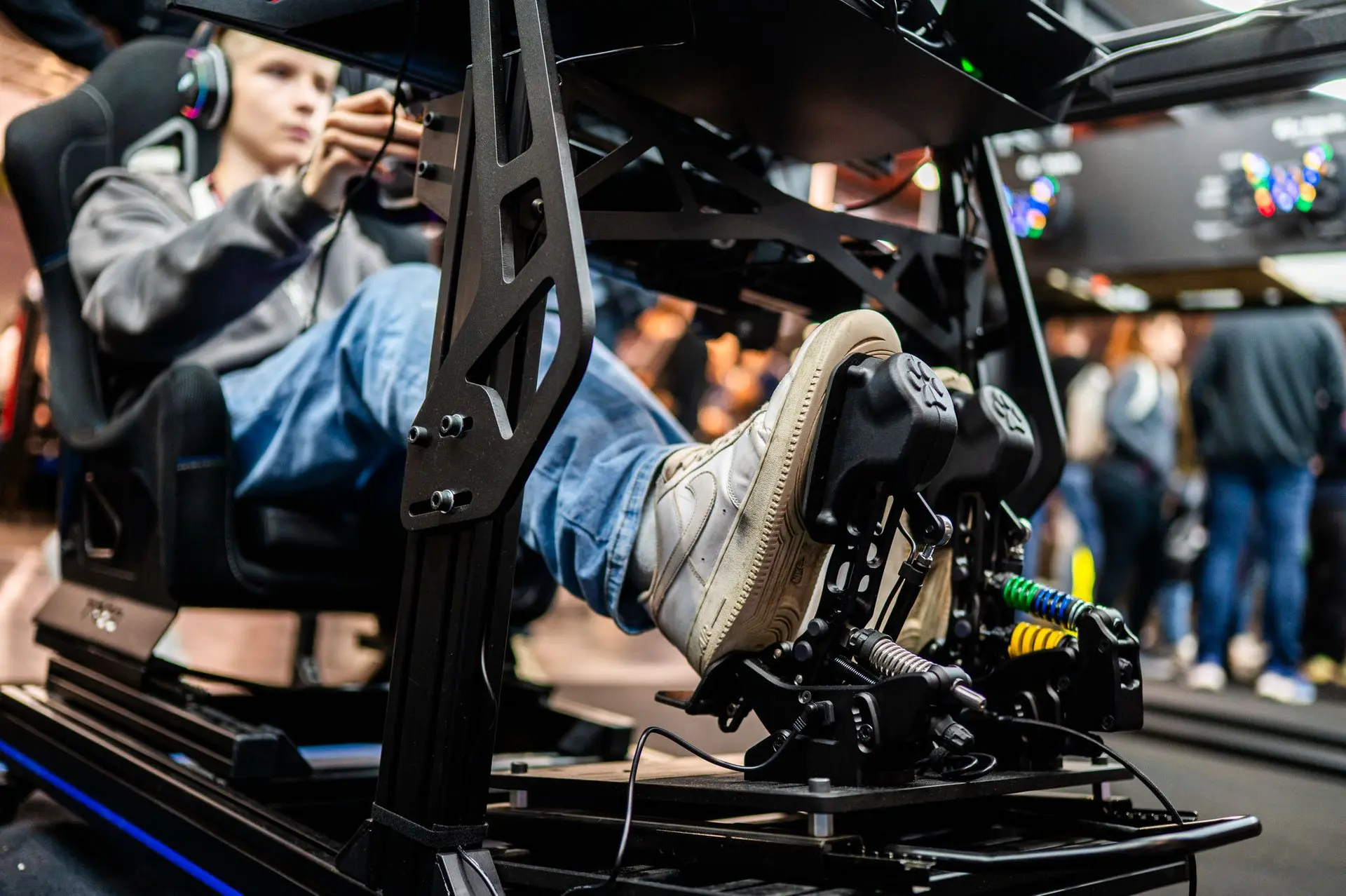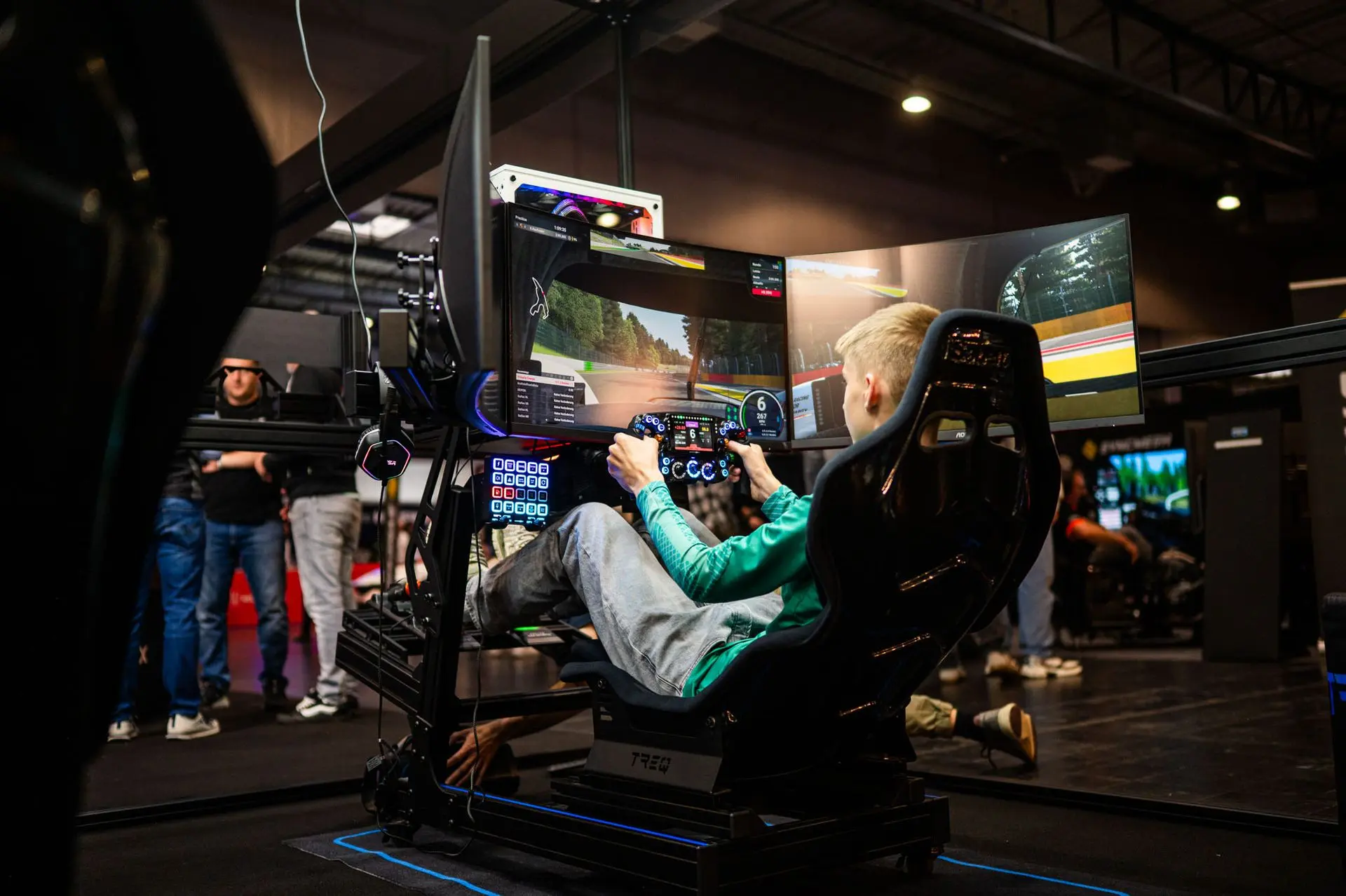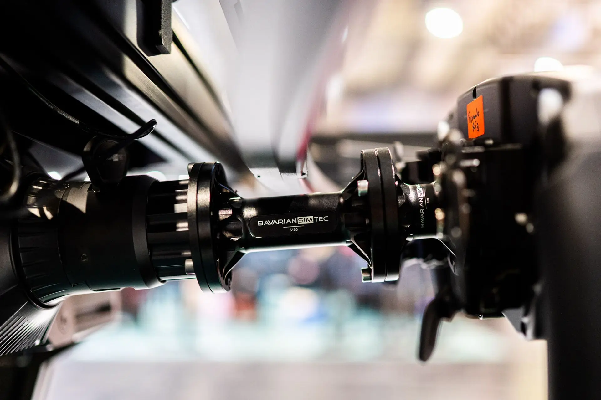 There was one on display without any equipment, which left many people wondering how we managed to connect the profiles the way we did. The second CXX was fully equipped with the latest hardware: BavarianSimTec's Delta SC steering wheel, the Simucube 3 Pro wheel base, and two Simucube Active Ultimate Pedals. Unfortunately, we could not take that rig home! We also brought the Treq One and the Treq Formula SRP, equipped with FatBlackCat pedals and Simagic and Asetek bases.