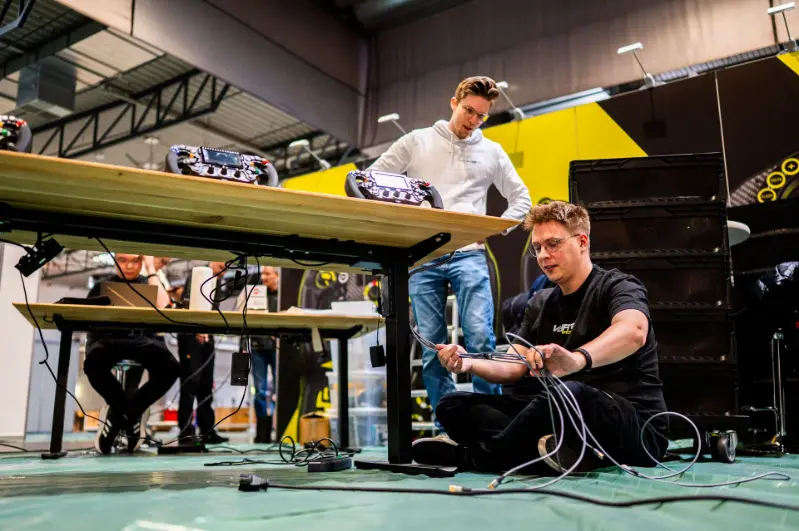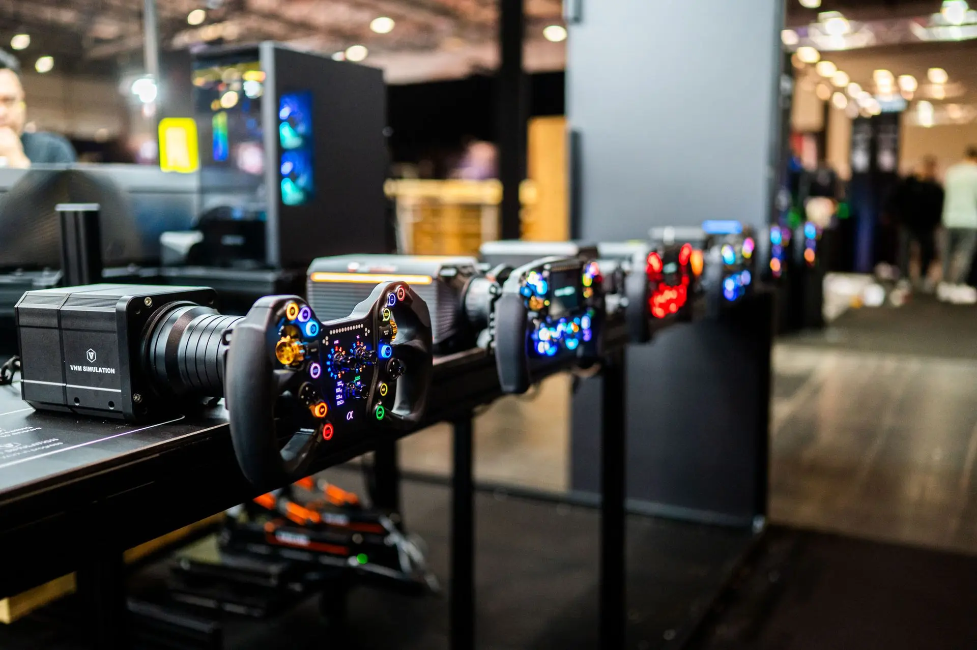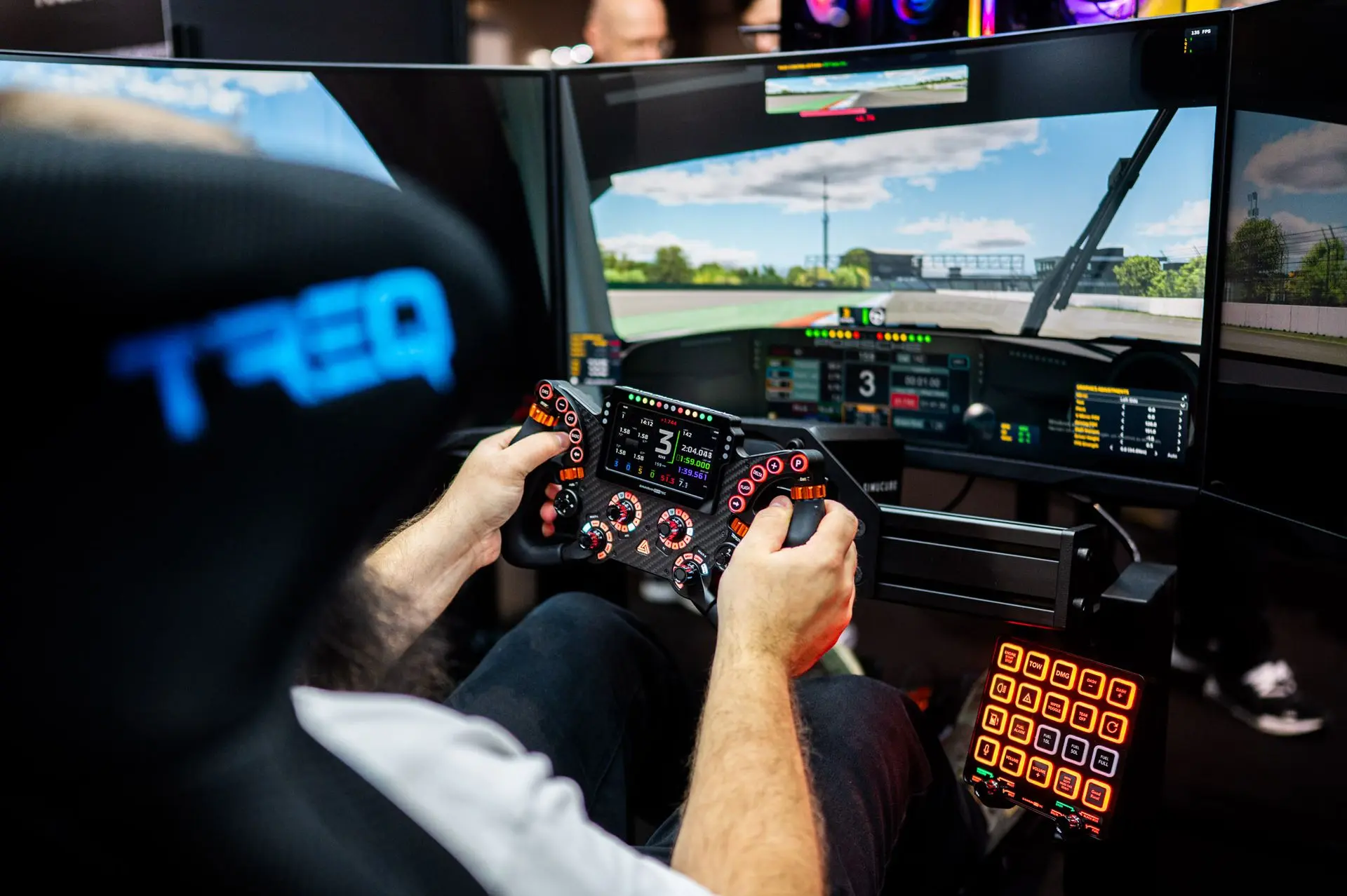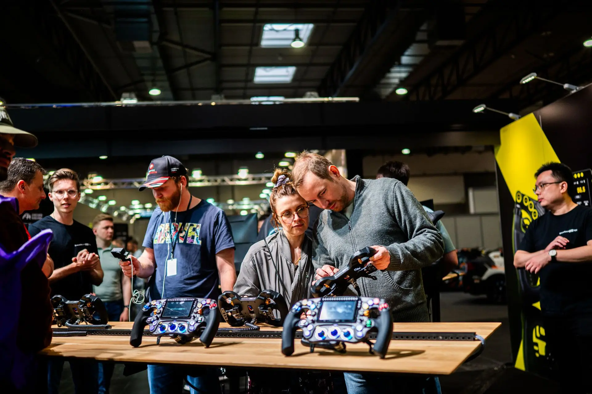 There was one on display without any equipment, which left many people wondering how we managed to connect the profiles the way we did. The second CXX was fully equipped with the latest hardware: BavarianSimTec's Delta SC steering wheel, the Simucube 3 Pro wheel base, and two Simucube Active Ultimate Pedals. Unfortunately, we could not take that rig home! We also brought the Treq One and the Treq Formula SRP, equipped with FatBlackCat pedals and Simagic and Asetek bases.
