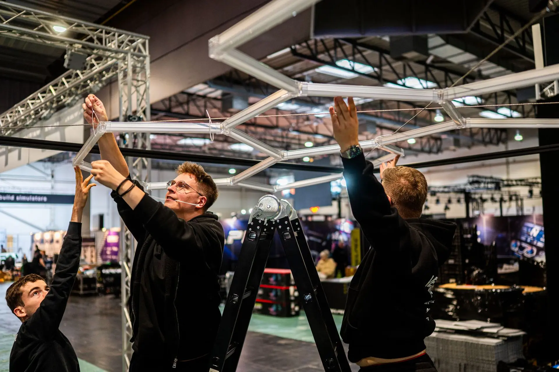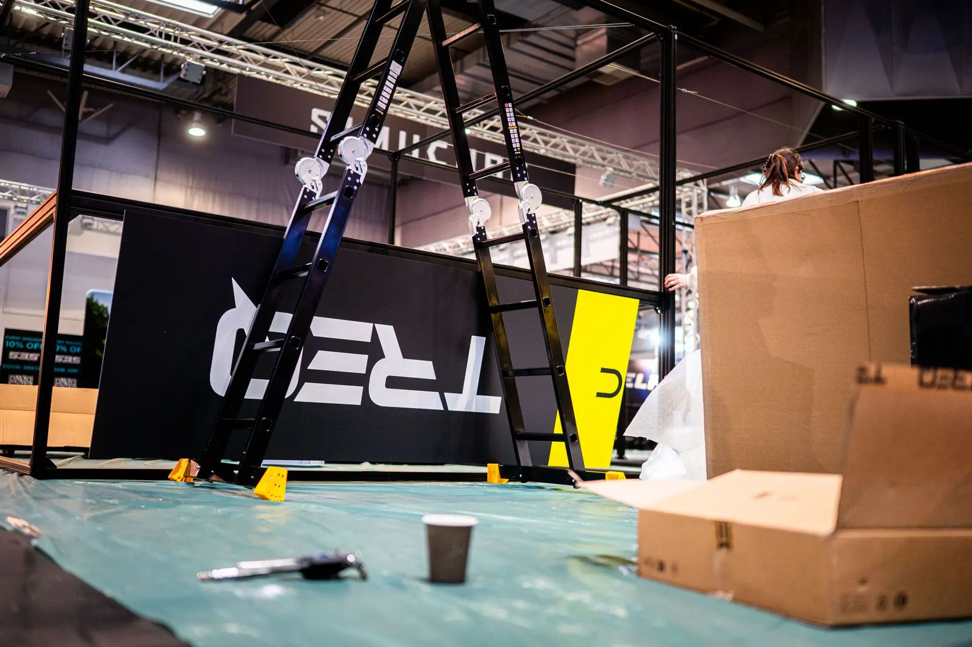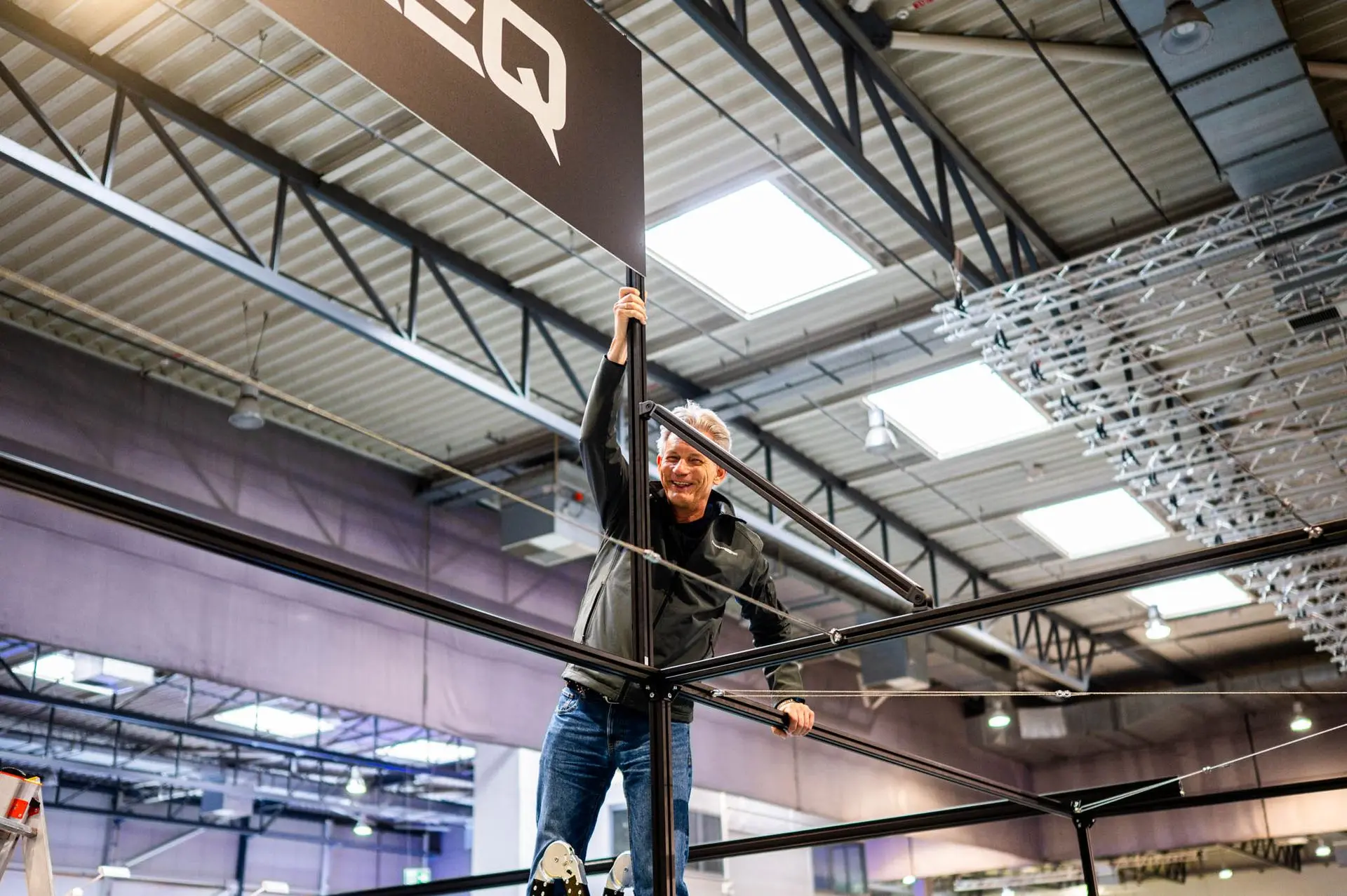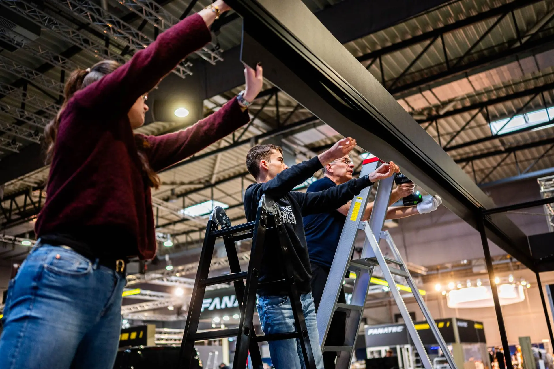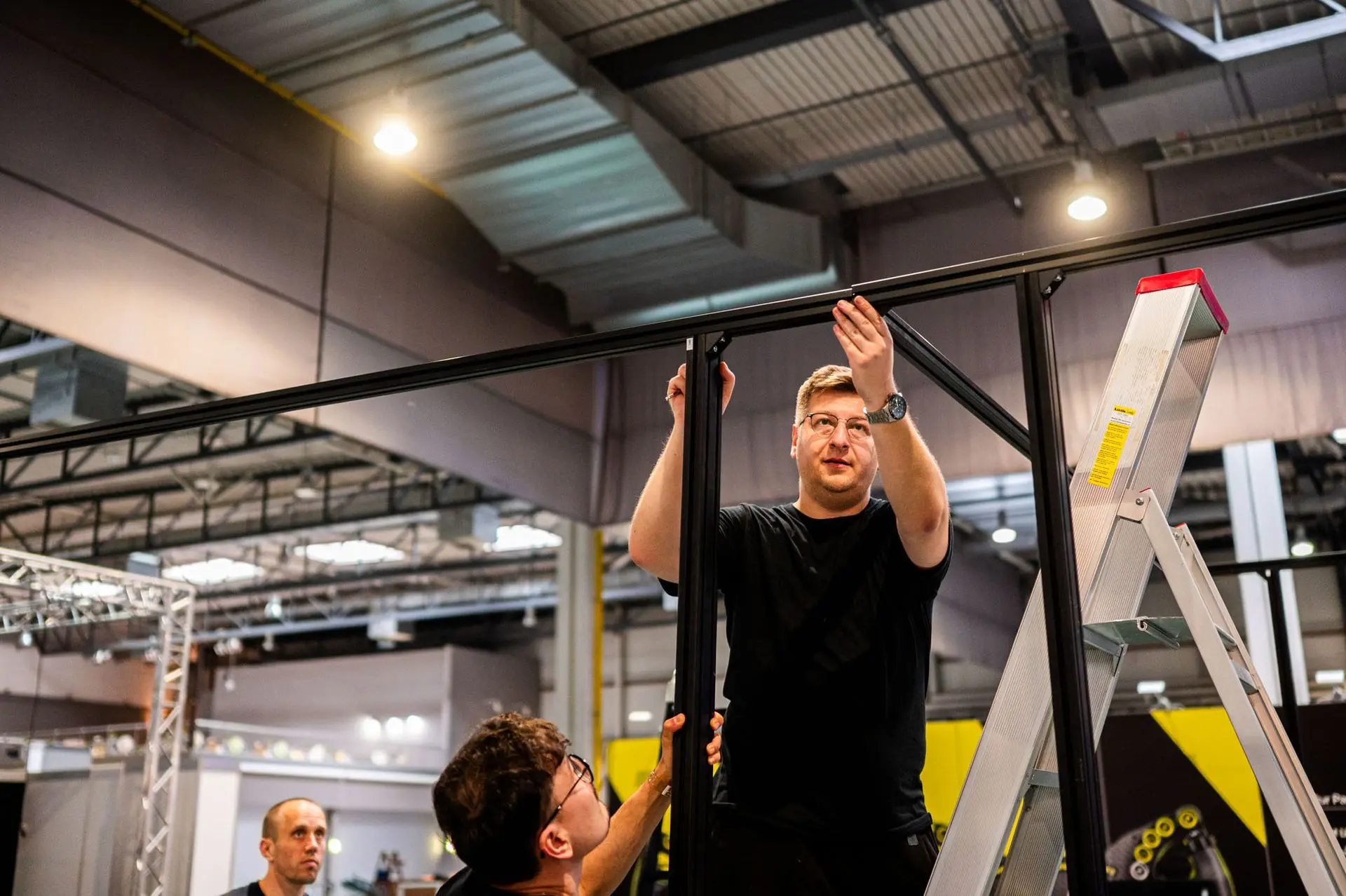 Did you know: alsmost our complete booth was made with parts from our DIY-section, demonstrating the power of aluminum profile! It took us two days to build the booth and setup the rigs. Here's how that went: