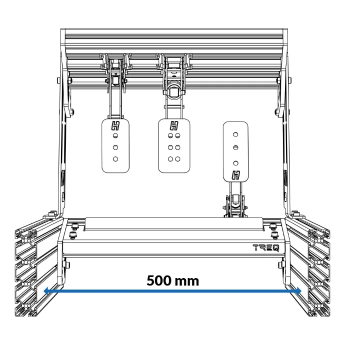 Le Inverted Pedal Deck est compatible avec tous les cockpits de simulation de course Treq, ainsi qu'avec tous les autres simulateurs dont la largeur entre les deux longs profils horizontaux est de 500 mm.