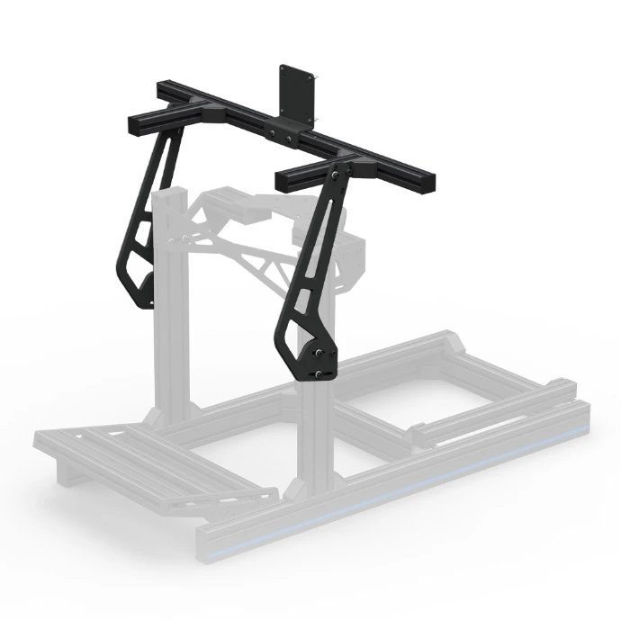 Monitors will shake a lot when using a motion rig. For this we recommend either the Free Standing monitor mount, or a custom build mount when you want the monitors to move with you. While the Unified Mounts are strong enough, the plastic casing of most monitors will vibrate on a motion rig, and usually need support at the edges of the casing to stop this from happening.