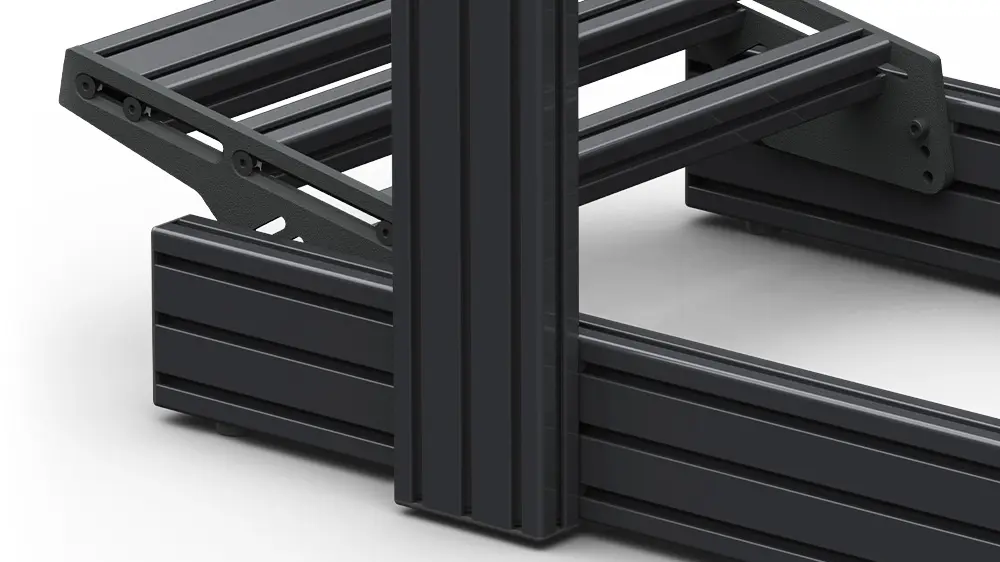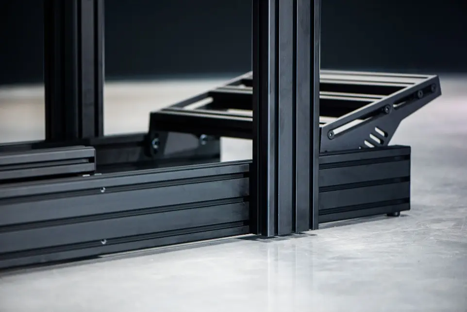 Treq has a ton of accessories which can be added to your sim racing rig. Think of keyboard trays, monitor mountings and racing seats. Anything you want is possible. That’s the power of aluminum extrusion rigs.